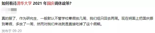 清华大学有研究生反馈,这样的假期变动,对他们意味着直接失去了一个假期。