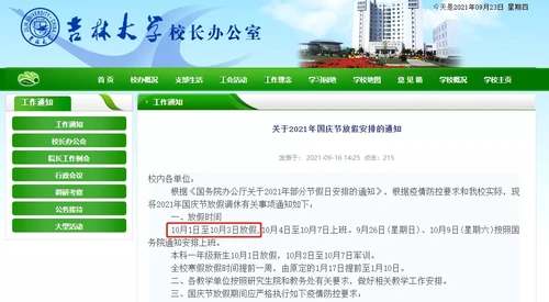 东北林业大学发布“中秋节、国庆节放假通知”,9月21日中秋节和10月1日国庆节各放假1天,其他时间正常作息安排,不调休,教学安排另行通知。