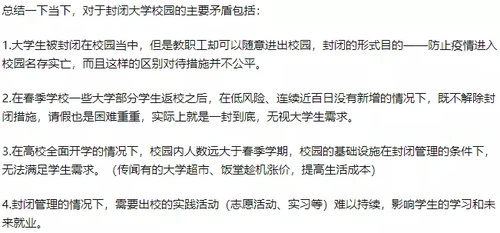 厦门大学的放假通知下,疑似有学生反映:学校目前已经封闭管理,“非必要不出校”是我们最熟悉不过的政策了。