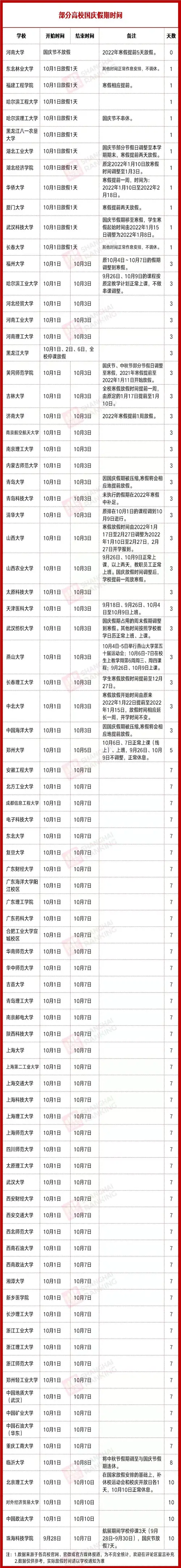 最后,小编还为大家找到了一张部分高校国庆假期安排表,方便大家观看!
