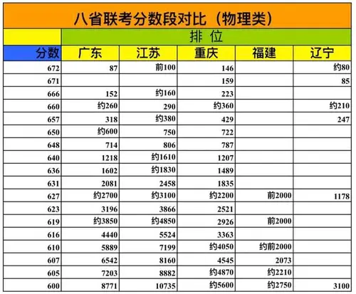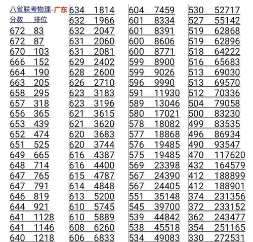 此次联考,广东参考人数有77.96万,是八省联考中人数最多的省。此次联考广东,物理类考生672分以上有83人,600分以上考生8771人,生率1.1%。