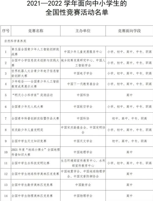 全国中小学竞赛活动2021,随着假期结束,小朋友们也都货到了校园当中,中小学各类竞赛活动的报名热度才刚刚开始。如今 各类竞赛成为了家长与学生口中的热门话题,甚至跃跃欲试,下面就为大家整理出最近开启报名的一些赛事和活动,供大家参考选择。