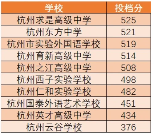 其中,最高的是杭州求是高级中学,达到525分,比去年涨了75分,与今年第一批录取学校最低投档线530分,仅相差5分。有部分高中涨幅甚至超过100分,像西子实验学校今年的分数线就比去年提升了112分!