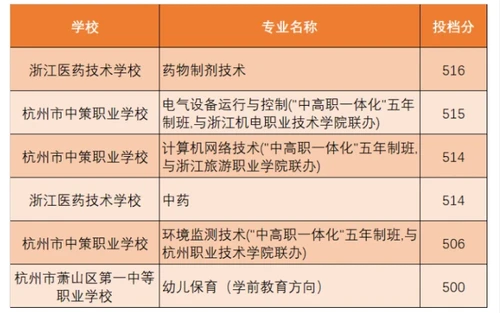 此外,今年有部分职高和技校(专业)的投档分也突破了500分,令人意外: