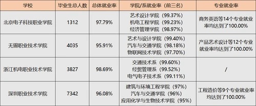 从以上数据中可以看到,北京电子科技职业学院和浙江机电职业技术学院的就业都非常好,就业率均在95%以上。