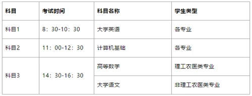 第十四条 考试科目和时间见下表,每科满分100分。