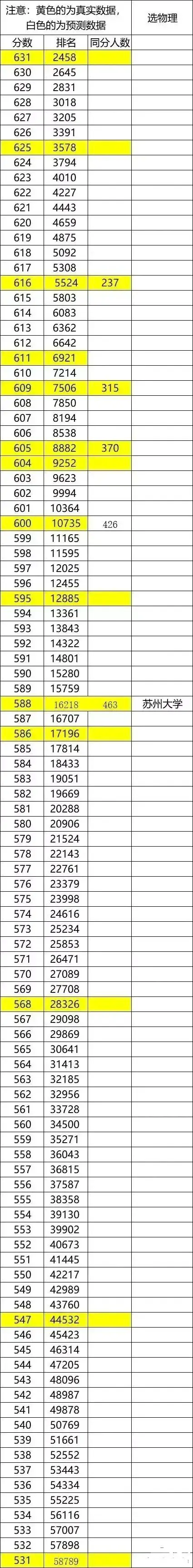 以物理方向考生为例,参考排行名次如下::646分 江苏省内排名917分,625分 江苏省内排名3472名,622分,江苏省内排名4018名。609分, 江苏省内排名7506名,608分 ,江苏省内排名7821名,572分 江苏省内排名23080名。注:目前全省共35万名考生,同分的很多。