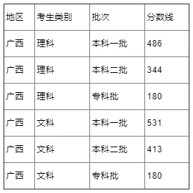 6、2022年广西专科文科分数线为:180分