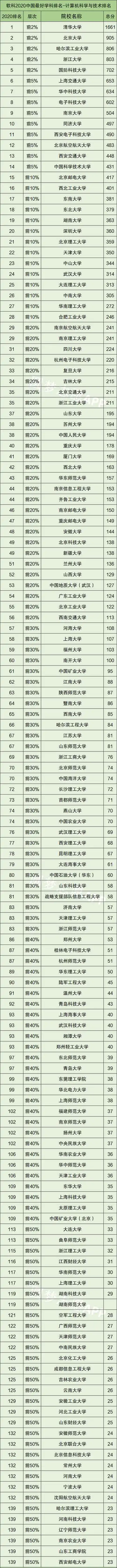 根据软科2020中国最好学科排名,计算机科学与技术排名专业排名前五的学校分别为: