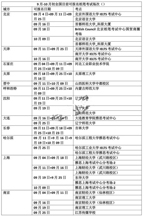 最后再给大家更新一下, 目前9月-10月初全国可报名的纸笔考试场次,有需要的朋友可以收藏一下。(统计截至8月16日中午12:00)