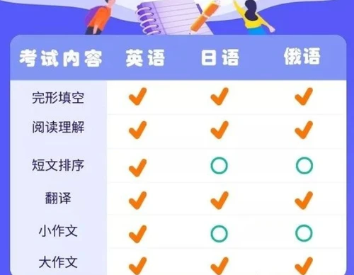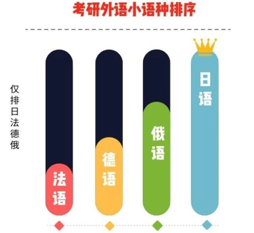 考研难度上,由于英语>德语>法语>日语,通常日语会成为更多人的选择。 如果觉得自己的英语水平并不是那么突出,想要通过英语成绩来拉分比较困难的,其实转换一下,用小语种来代替英语参加外语考试的话,会更容易提分。 比如日语和俄语考试中,不仅没有短文排序和小作文这种耗费时间和精力的题型,在英语和日语都有的题型下,日语单个题目的分值也相应较高。