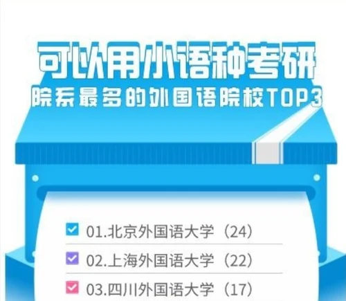 其中北京外国语大学>上海外国语大学>四川外国语大学成为可用小语种考研院系最多的3所外国语大学。