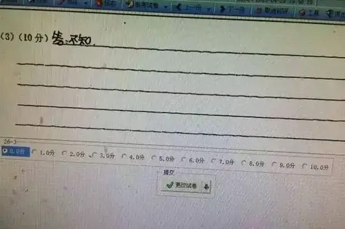 问题:部分考生匆忙答题,答错了一段,便用删除符号大面积删掉。