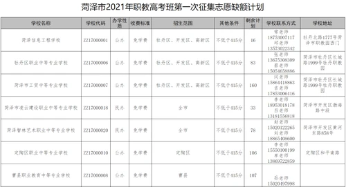 02 菏泽市2021年职教高考班 第一次征集志愿缺额计划