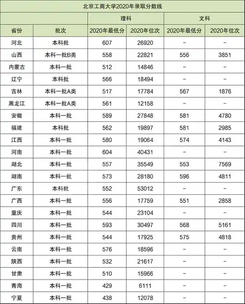 小编根据各省教育考试院公布的2020年招录数据,整理出北京工商大学2020年录取分数线,供2021年考生参考。