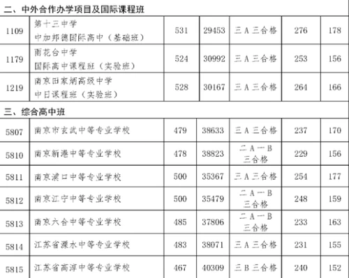 第二批次学校投档控制线为:原市区普通高中510分,浦口区、江宁区、六合区、溧水区、高淳区普通高中由各区教育局划定;中外合作办学项目及国际课程班投档控制线为510分;综合高中班投档控制线420 分;五年制高职专业班投档控制线420分,其中护理、助产、师范类专业投档控制线455分;中高等职业教育3+3分段培养专业班、技师班和高级技工班投档控制线为400分。出现投档分相同时,按排序规则录取。