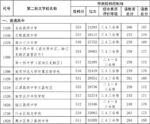 经预测,第二批次部分高中阶段学校的投档控制线如下: