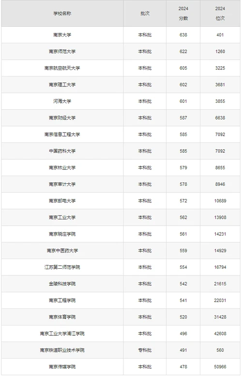 根据江苏省教育考试院公布的数据,圆梦志愿为大家整理了南京市内所有中外合作大学2024年在江苏高考历史类的分数线排名汇总表。其中,南京大学在历史类的分数线最高,2024年的最低分为638分、最低位次为401名。