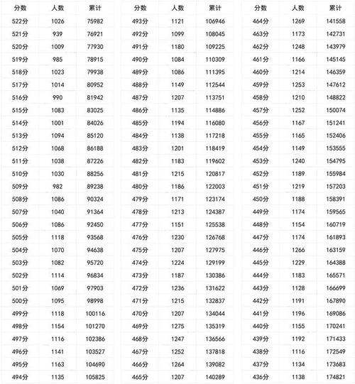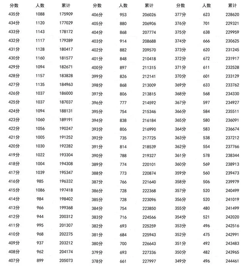 2022年四川省理科成绩达到本科线426分的共计有18.6万人,人数还是比较多的。350分省位次为2.4万多名,而300分省位次为262698,四川省理科生大部分分数集中在350分以上,350分以下分数位次情况小编就不仔细介绍了。