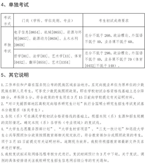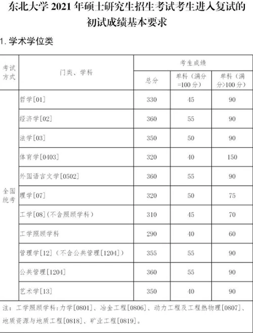 东北大学2020年硕士研究生招生考试考生进入复试的初试成绩基本要求
