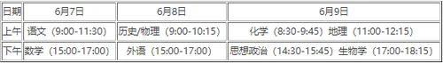 2022年高考时间和考试科目安排