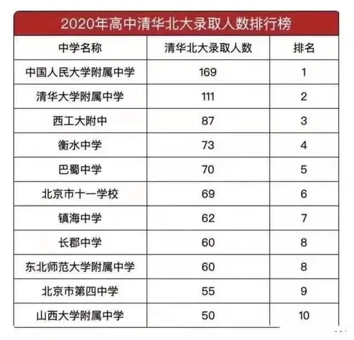目前,2020年清华北大的招生录取工作均已结束,全国高中清华北大录取排行榜已经新鲜出炉,衡水中学以73人的战绩位居第四。衡水中学的高考成绩确实令人骄傲,然而在2020年清北录取人数排行榜上,衡水中学只排到了第四位,那么前三名都是哪些学校呢?衡水中学都牛得不得了,第一名该有多厉害呢?