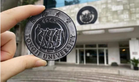 通知书封套正面是一枚同济大学校标,三人同舟,同舟共济