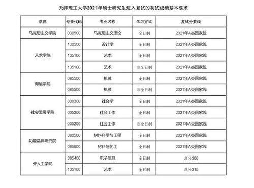 2021各院校考研复试分数线已经陆续公布,2021年天津理工大学考研复试分数线已经公布,下面是主要内容,供大家参考,具体信息以官方网站发布的内容为主。