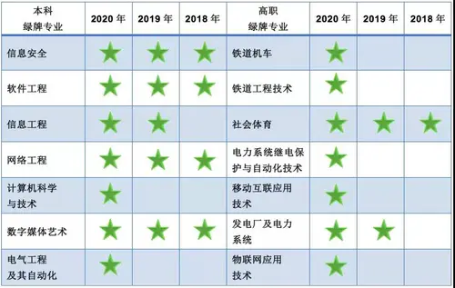 注:绿牌专业指的是失业量较小,就业率、薪资和就业满意度综合较高的专业,为需求增长型专业。行业需求增长是造就绿牌专业的主要因素,连续绿牌说明相关专业就业优势具有持续性。