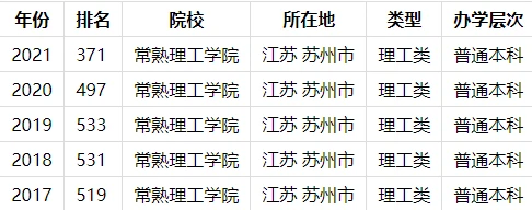 2022年,常熟理工学院最新排名全国第371名(参考的是2021年的综合排名数据)。