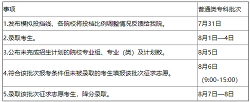 2021年江苏普通类专科录取时间为8月1日-4日,降分录取时间为8月7日-8日。