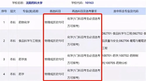 沈阳药科大学的药学类王牌专业,首选科目不限,再选科目中选考化学即可报考。