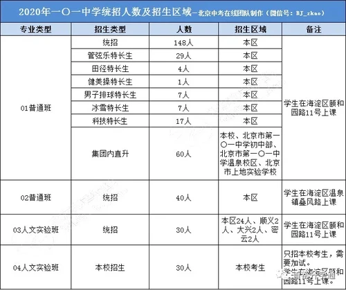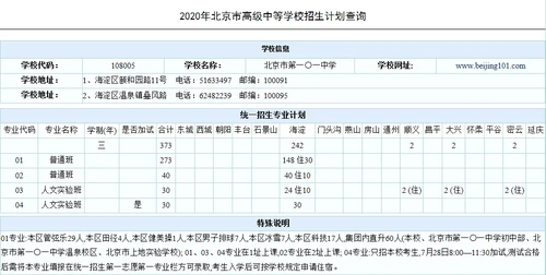 由上图可知,一〇一中学2020年统招招收373人(比去年增加3人)。下面是各专业类型的招生人数和招生区域:
