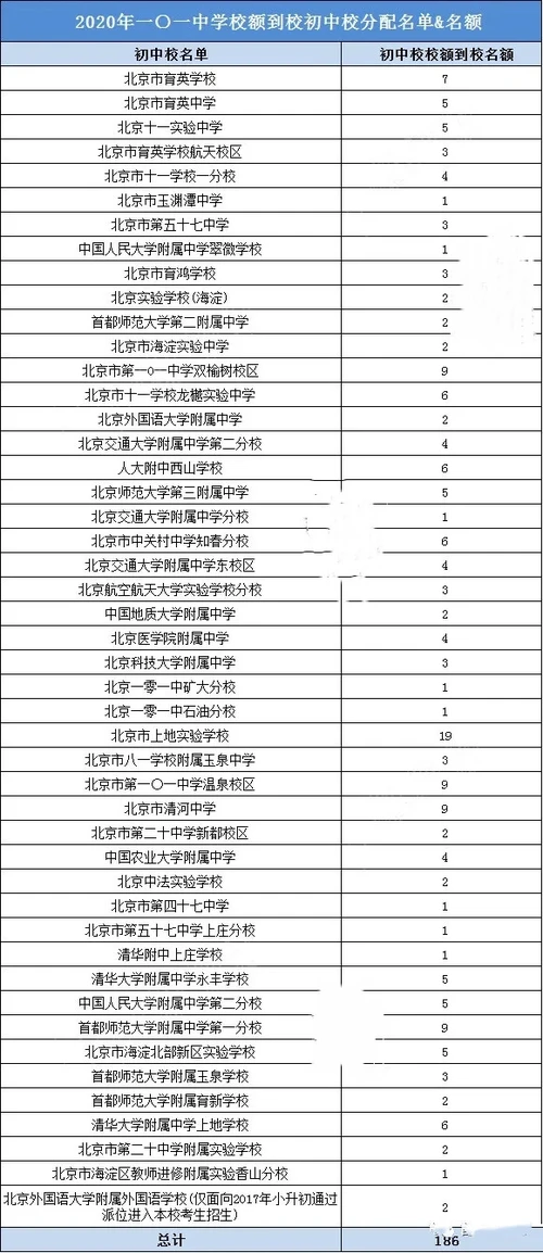 2020年一〇一中学校额到校共计划招生186人,校额到校基本属于校内竞争,考生只要校排名在校额到校招生计划内,同时,满足校额到校报考资格,就有很大的几率通过校额到校途径升入一〇一中学。