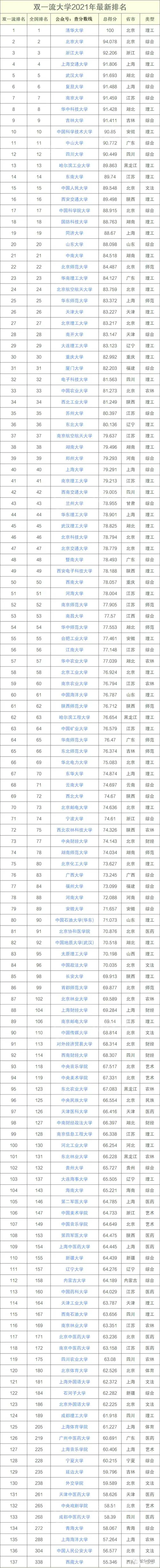 根据中国科教评价网发布的金平果2021-2022年中国大学本科院校竞争力总排行榜,小编为大家整理出了国内137所双一流大学2021年最新完整版排名,具体如下图: