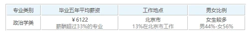 就业方向:政治学与行政学毕业生可以在各级各类党政机关、政府、人大、政协、民主党派、司法、新闻出版机构、工会等部门的政务活动、行政管理、办公室工作,或理论宣传和政治教育;企事业单位、社会组织的政策法规部门、研究部门、人事与教育培训部门、行政监察部门、综合办公部门、宣传与公共关系部门等的政策分析、组织人事、行政管理、外事交流、文秘、宣传等方面的工作;基层群众自治组织中的管理岗位;高等教育单位与科研机构的政治学教育研究等。