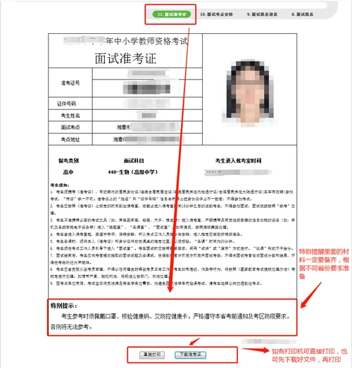 点击“面试准考证”,然后根据提示下载pdf准考证文件。下载后,仔细核对个人信息,并直接打印成准考证。