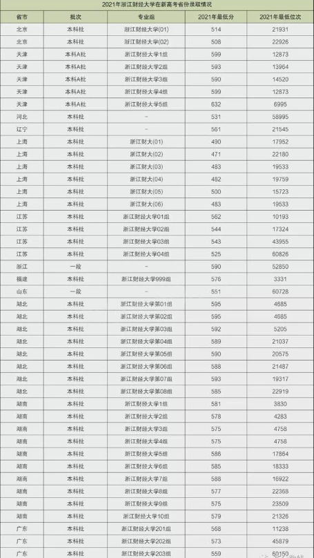 小编根据各省教育考试院公布的招录数据,为大家整理出浙江财经大学2021年的录取分数线,供2022年考生参考。