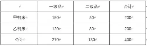 甲、乙两台机床生产同种产品,产品按质量分为一级品和二级品,为了比较两台机床产品的质量,分别用两台机床各生产了200件产品,产品的质量情况统计如下表: