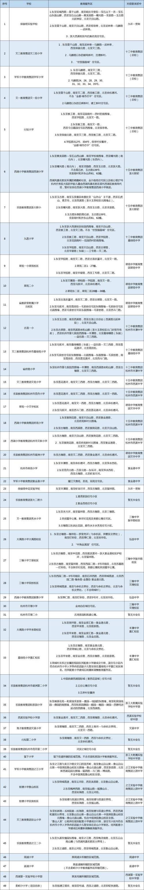 2.上述教育服务区仅包含已经区教育行政部门备案明确的住宅。以后新建或改扩建的住宅,将另行确定其教育服务区,并以区教育行政部门公布的文件为准。