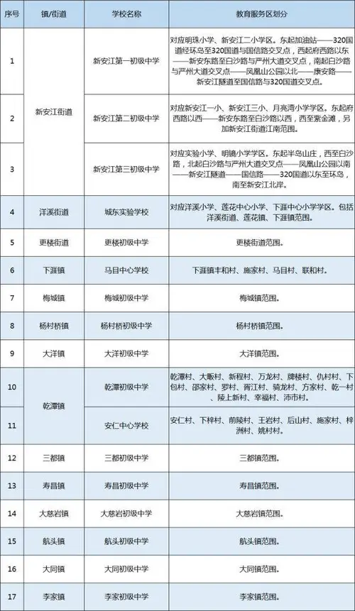 锦城、锦北、玲珑、锦南、青山湖街道初中招生范围