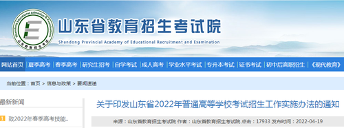 2022山东高考加分政策有哪些? 从山东省教育招生考试院发布的“关于印发山东省2022年普通高等学校考试招生工作实施办法的通知”了解到,2022年山东高考加分录取照顾政策已公布,详细内容 2022山东高考加分政策有哪些 (一)下列考生在录取时可以享受在其文化统考成绩总分的基础上增加分数投档照顾: 1.烈士子女,可在其统考成绩总分的基础上增加20分投档,由高校审查决定是否录取。 2